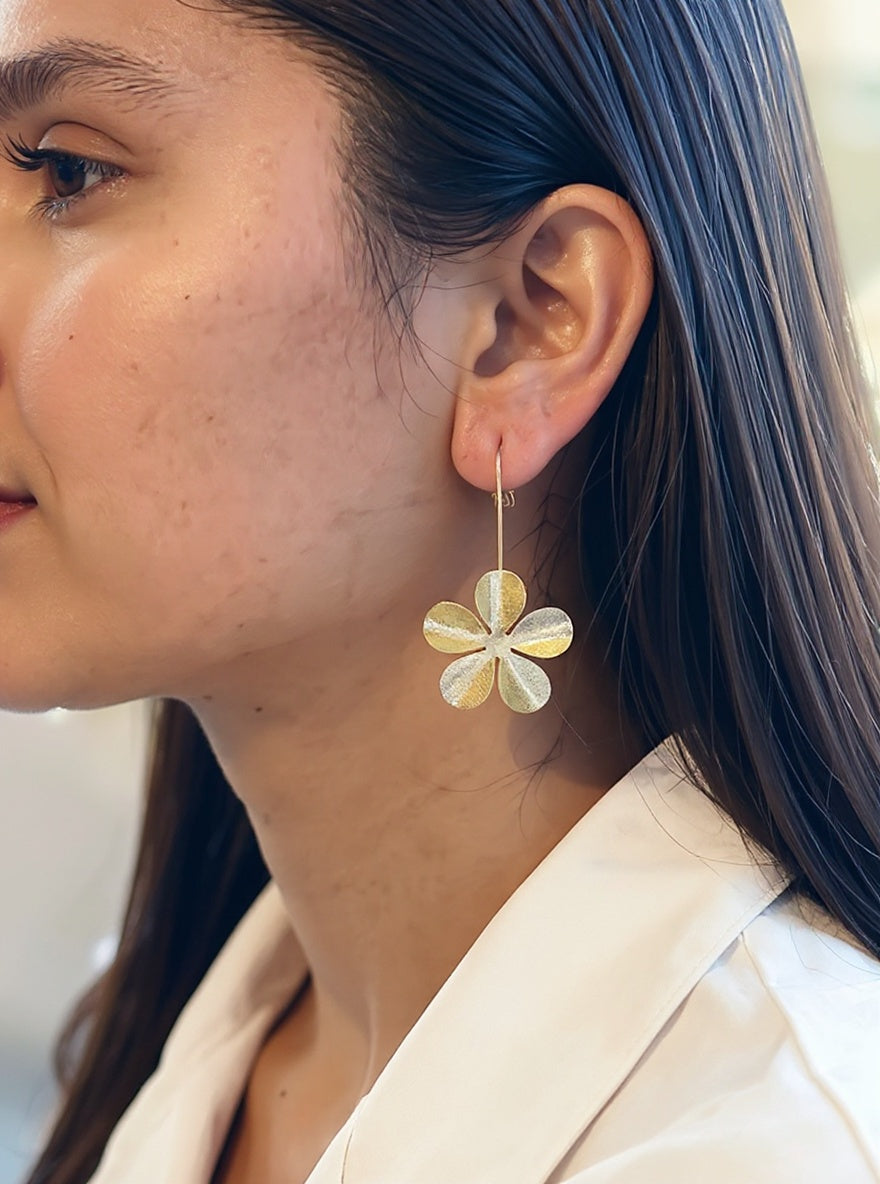Aros de flor pasantes enchapados en oro 18k. Libres de niquel.