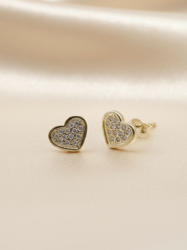 Aros chicos de corazón con microcircones, enchapado en oro 18k y libres de niquel.