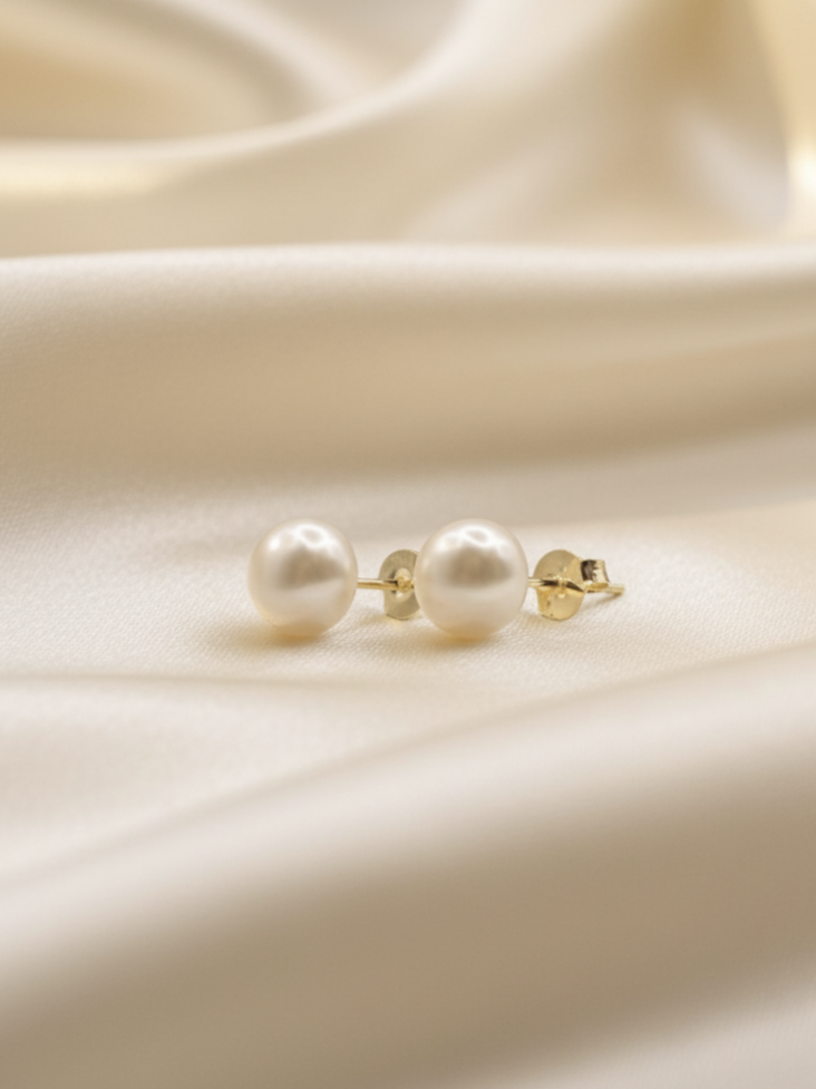 Aros de media perla grande, vástago y tornillo enchapado en oro 18k y libre de niquel.