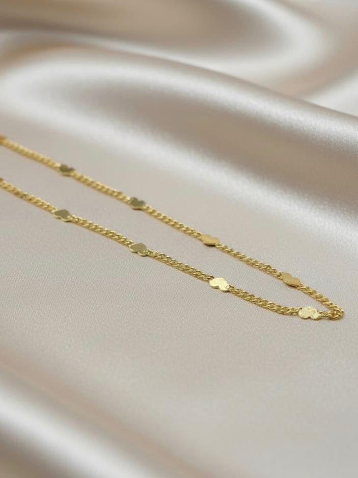 Cadena con aplique de corazones. Enchapada en oro 18k y libre de niquel.