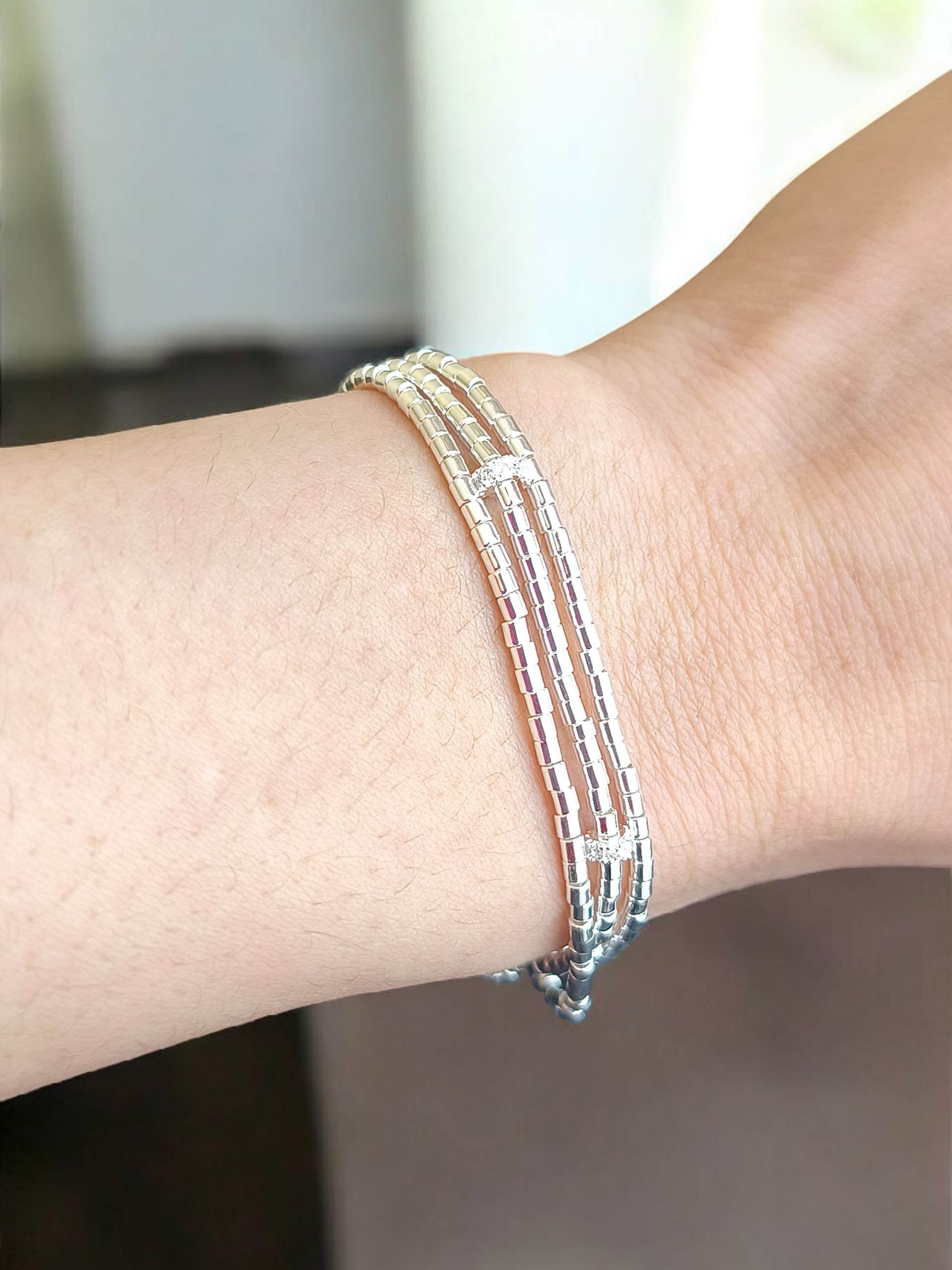 Collar de mostacillas con redondelitas de microcircones. Enchapado en plata 925 y libre de niquel.