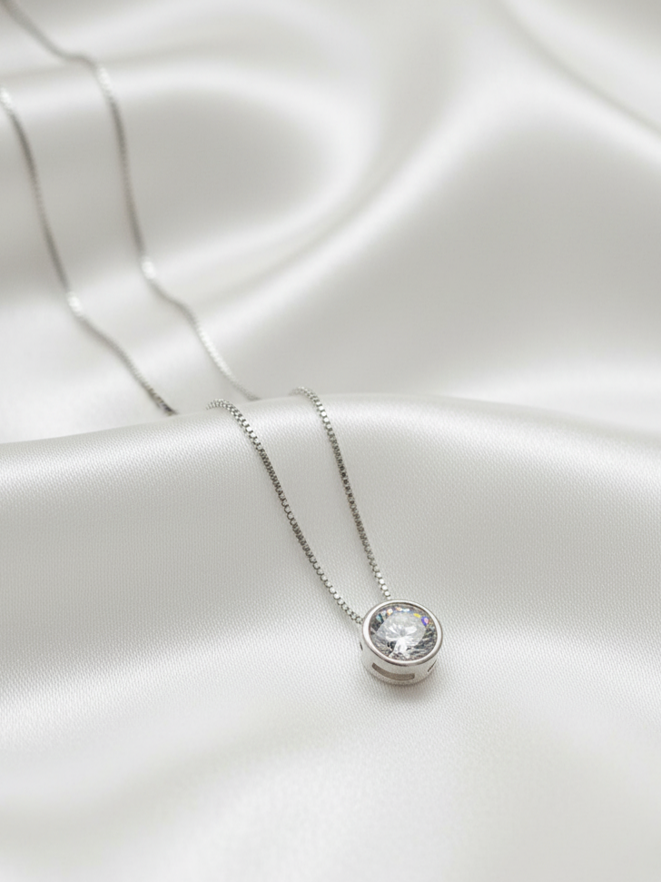 Collar con punto de luz engastado en marco de 7mm, enchapado en plata 925, libre de niquel.