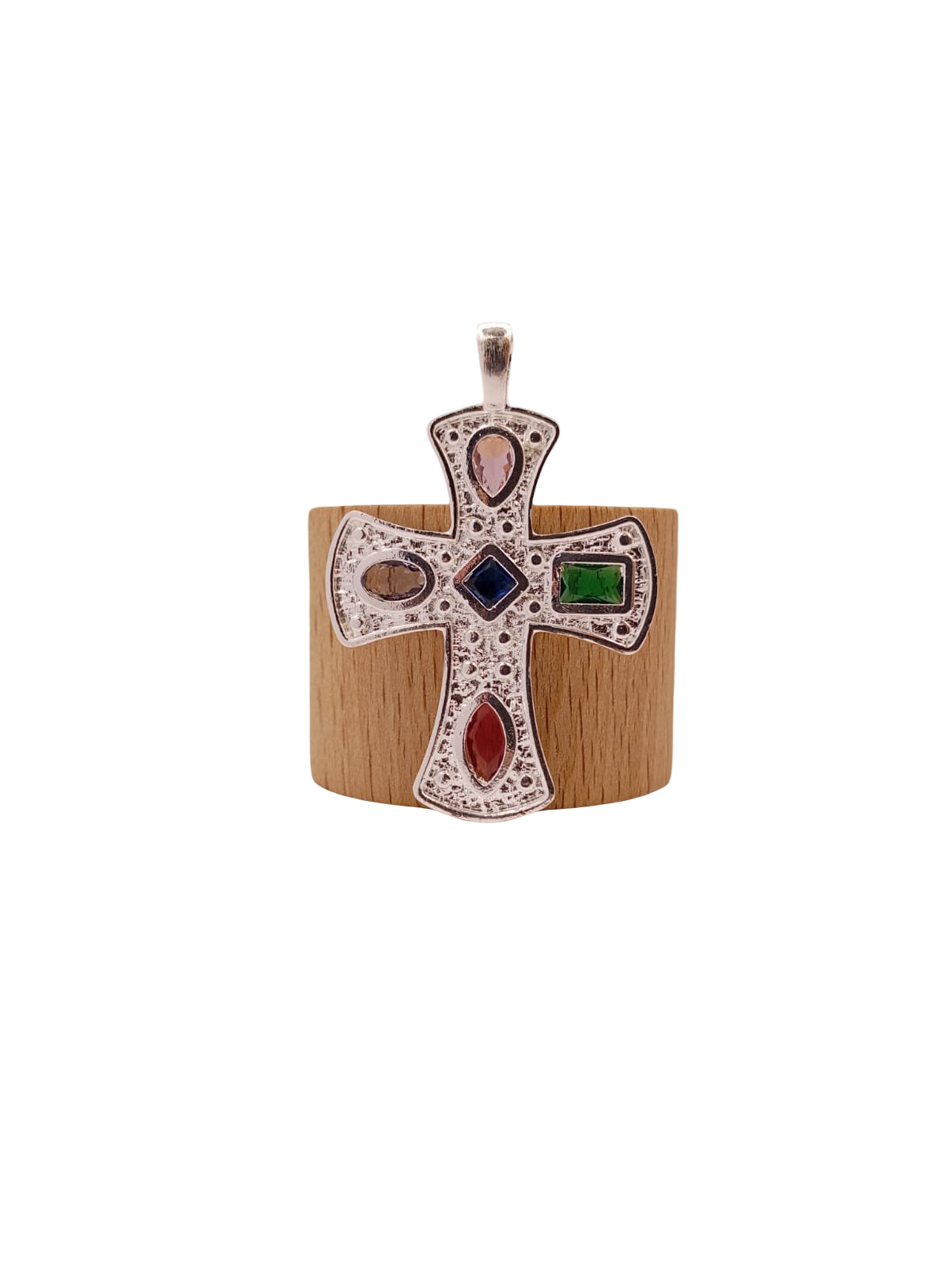 Colgante de cruz con circones de colores, enchapada en oro 18k y libre de niquel